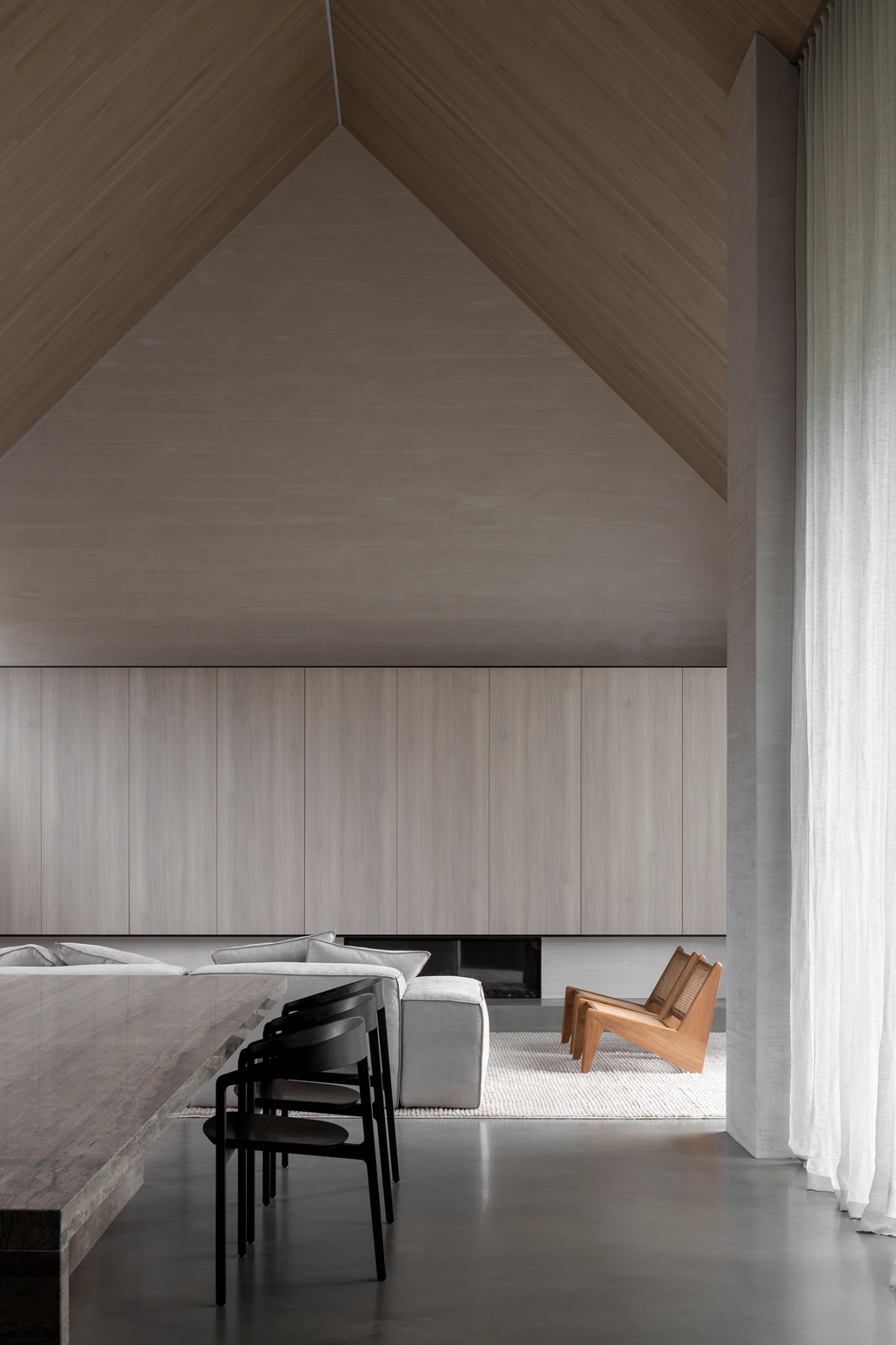 We were engaged by the design team to create a custom product to be used for the ceiling cladding of the home’s gable form. We worked in close collaboration with local company, Scanlan & Makers, as well as architect Adam Kane, to develop a custom timber finish that serves to highlight the textural materiality of this incredible space.